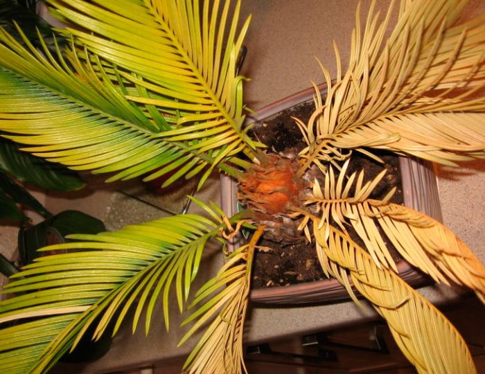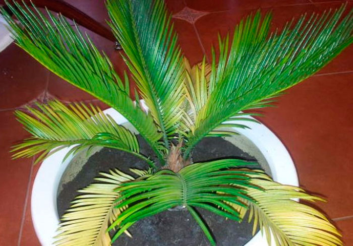Листата на Cycas пожълтяват, какво да правя и защо това се случва: