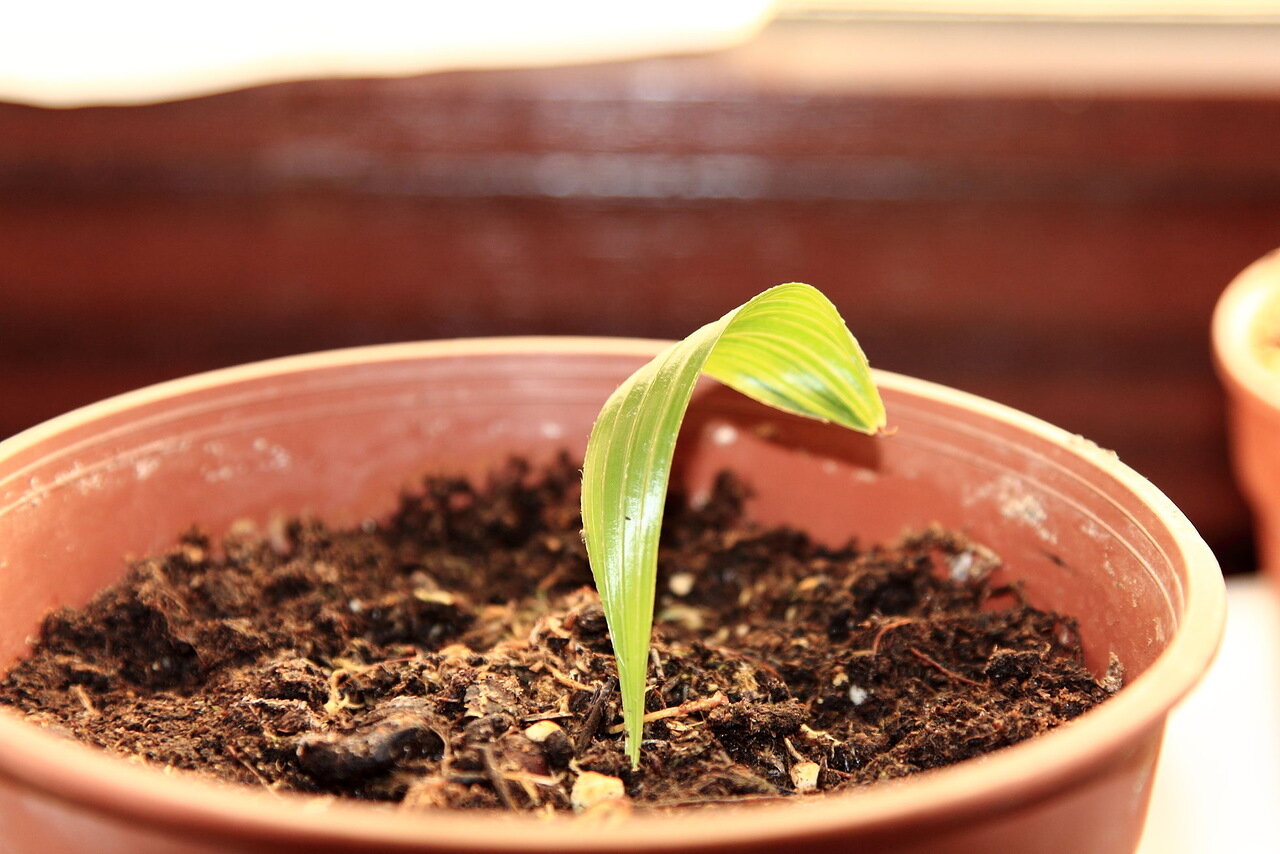 Оптимална температура за покълване: +22 .. + 25 ° С. Най-пресните семена ще поникнат след 2 месеца, а тези, които са на ръба на срока на годност, ще поникнат едва след 6-8 месеца. Кълновете трябва да бъдат трансплантирани в нов контейнер, когато листът му порасне на дължина от 4 cm.