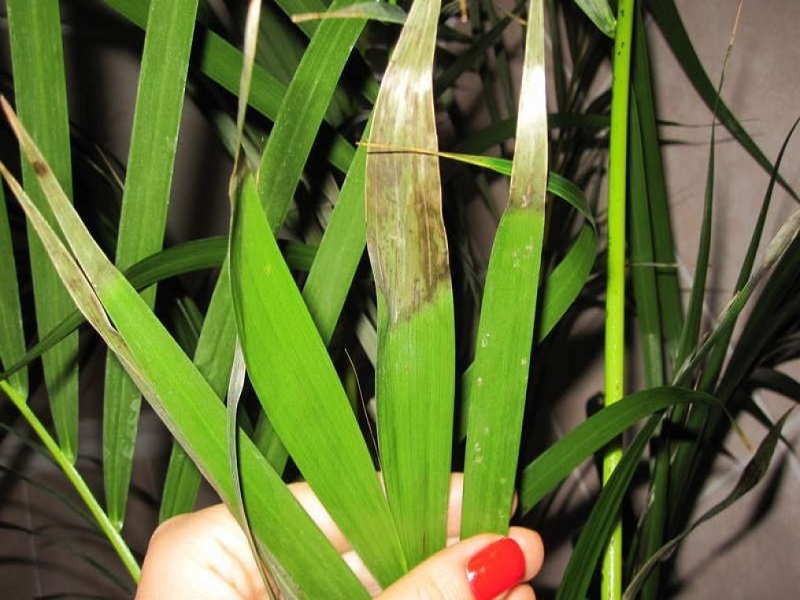 Що се отнася до болестите, палмата арека най-често страда от гъбички. Мократа почва провокира гниене на кореновата система. Този проблем може да бъде идентифициран по петна и некроза на листната плоча. След което те започват да пожълтяват, избледняват. Пръскането с фунгициден разтвор ще помогне да се коригира ситуацията.