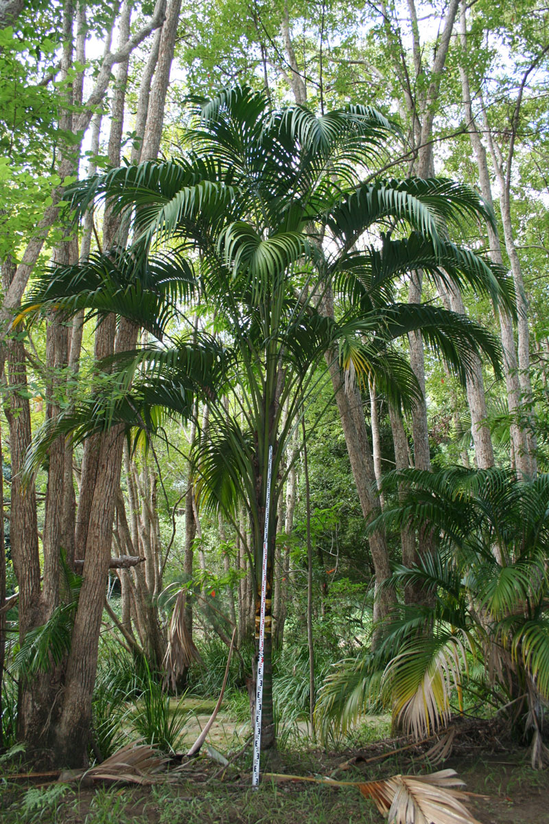 Тази палма е ниска, в природата достига 10 м. Багажникът е по-широк в основата.