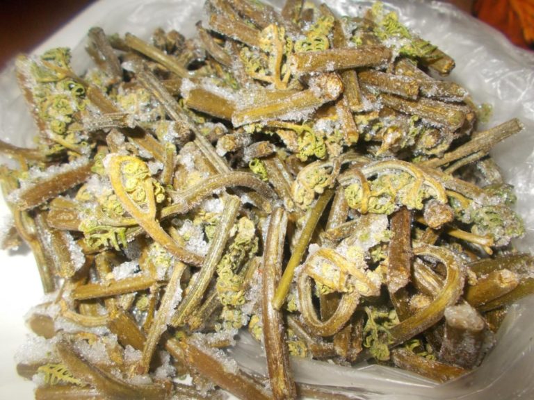 Един прост и ефективен метод за приготвяне на издънки, които практически не се различават по външен вид и вкус от пресен продукт, е замразяването на папрати: