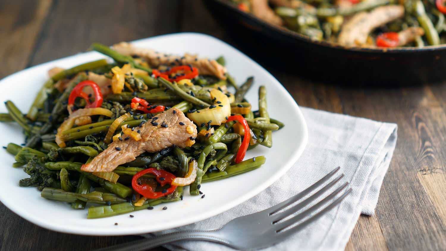 Нарежете 2 средни лука на половин пръстени, запържете в растително масло до златисто кафяво, добавете 500 г варена папрат, нарязана на малки парченца, в тиган, пържете няколко минути. Това е просто, но вкусно ястие. По желание можете да добавите моркови, подправете със заквасена сметана и майонеза. Подправен със соев сос за папрат в корейски стил.