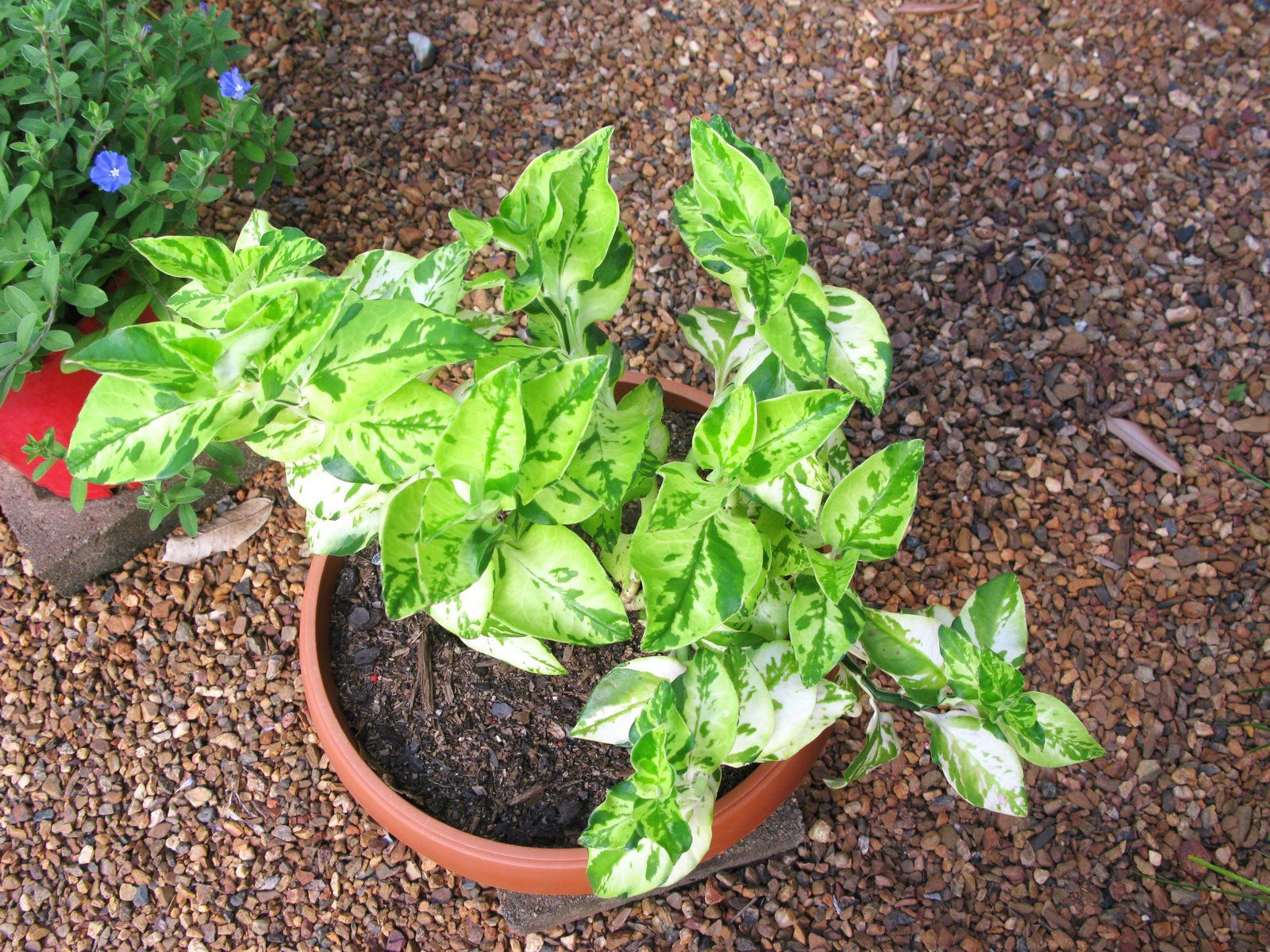 - Педилантус е титималоид. Некапризно стайно растение е разклонен храст, който е покрит с яйцевидни листни дръжки. Дължината на листа достига 10 см, а ширината е 5 см. Те са боядисани в яркозелени, розови, бели или млечно-кремави нюанси. Цветът на един и същ вид директно зависи от количеството светлина в стаята и други условия на живот. С появата на млади издънки и листа стъблото е леко извито и придобива леко стъпаловидна форма. По върховете на клоните се появяват малки съцветия от 5-7 пъпки. Pedilanthus titimaloid, домашната грижа за която е лесна и проста, произвежда червени или оранжеви цветя. Максималната височина на храста е 2 м. Образуват се много малко странични издънки.