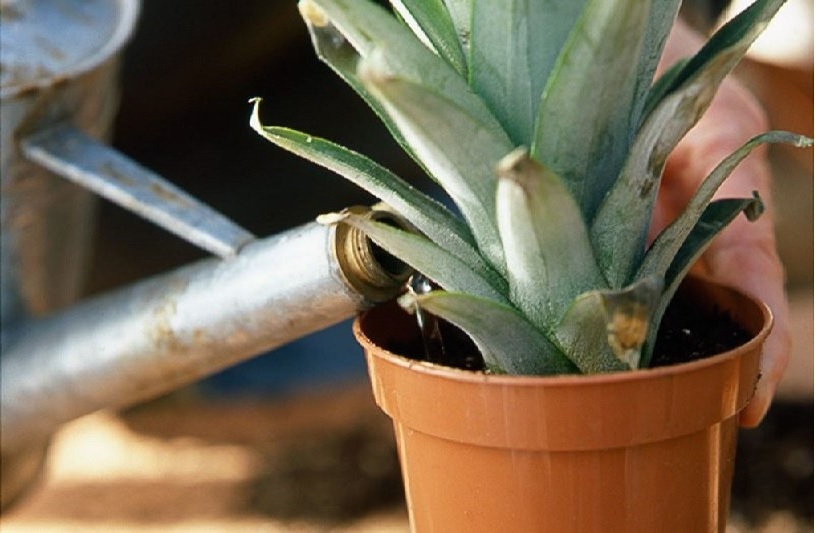 През лятото ананасът изисква обилно поливане. Водата трябва да е топла, температурата не е по-ниска от +30 ℃. Предварително се защитава в рамките на един ден. В топло време екзотично растение се нуждае от допълнително пръскане. През есента и до пролетта поливането се намалява.