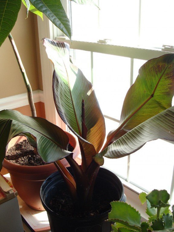 - бананът спира да расте - недостатъчно осветление и твърде малка саксия;