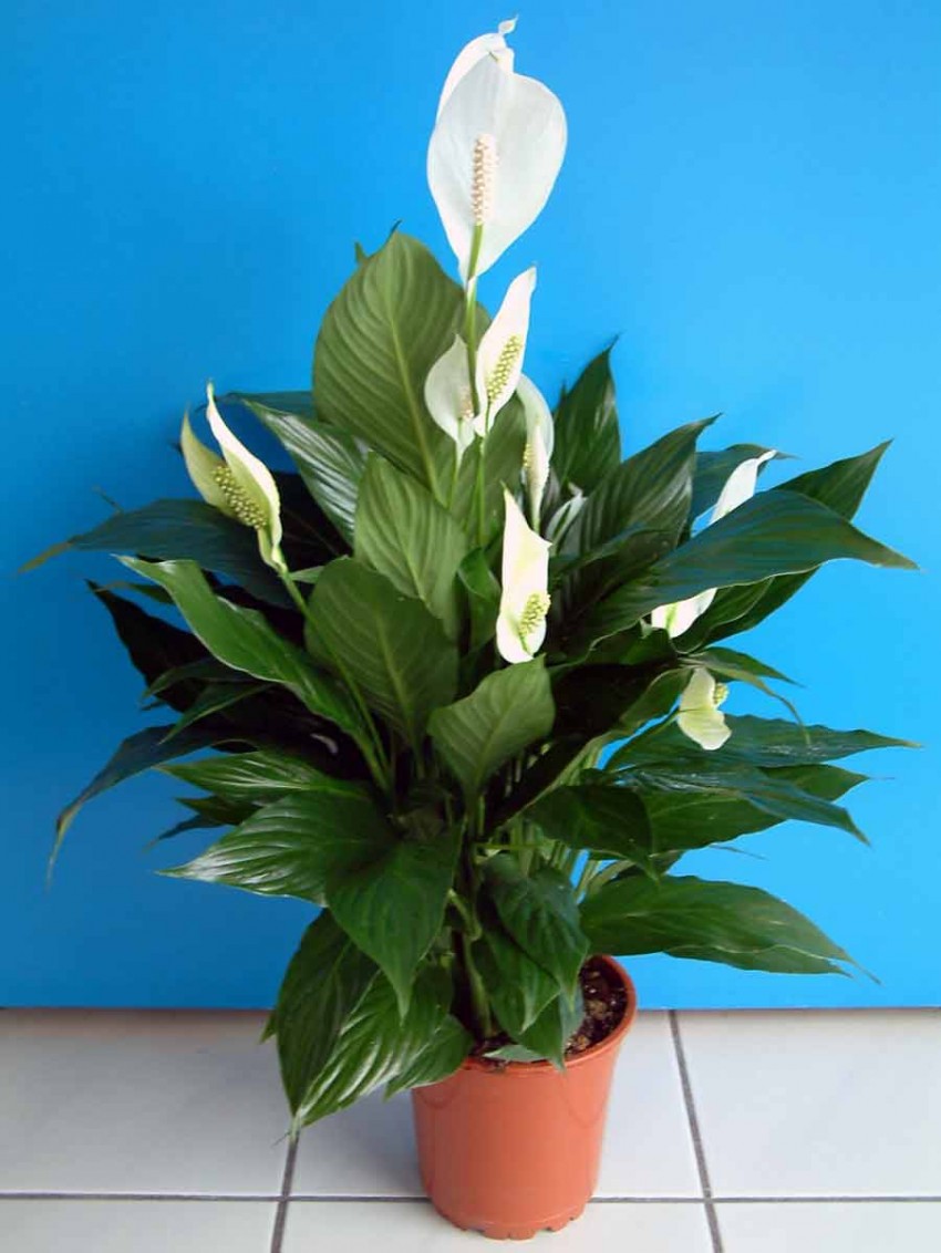 Обилен цъфтящ спатифилум е едно от най-големите стайни растения от описания вид. На височина може да нарасне до 60 см. Дължината на цветното покритие е 12 см, колкото е дължината на листата на растението.