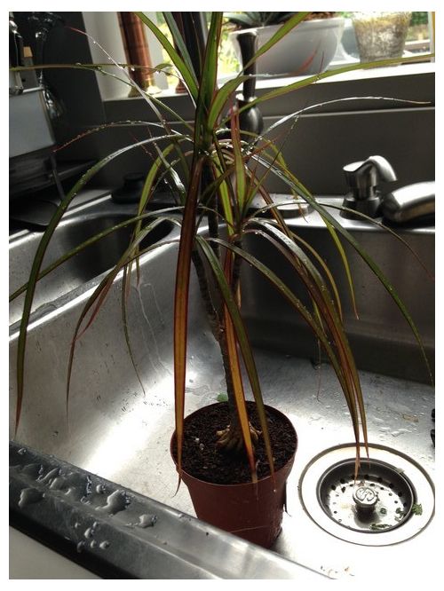 Недостатъчната влага също ще доведе до падане на листата, пожълтяване и увяхване. Драцената трябва да се полива след пълното изсъхване на буца земя и не трябва да отлагате поливането. Знаейки защо драцената оставя суха, лесно можете да избегнете неприятности.