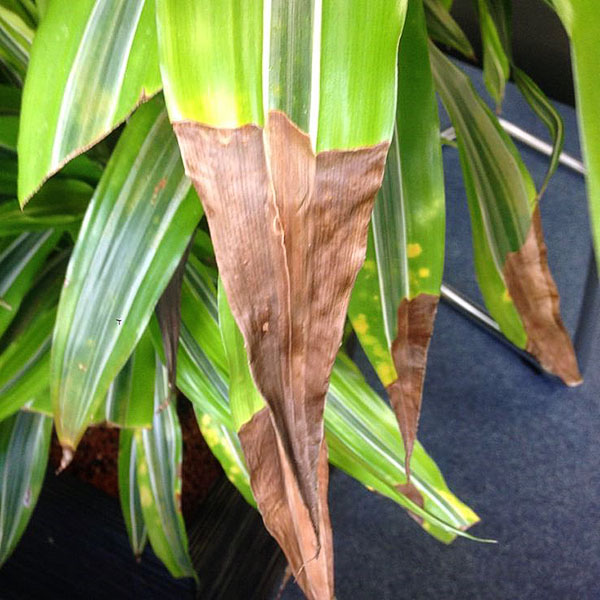 Течения, студен въздух или внезапни промени в температурата ще доведат до появата на драцени на кафяви петна. Трябва да се провери дали на мястото на драцената се появява течение по време на проветряването на помещението.