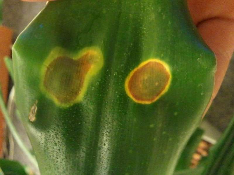 - хетероспория - продълговати кафяви петна, при които кантът става червен.