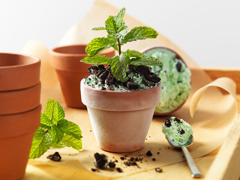 - Ягодовият мента е градински сорт, който се справя добре в саксия. Комбинира аромати на мента и зрели ягоди, понякога с шоколадови нотки;