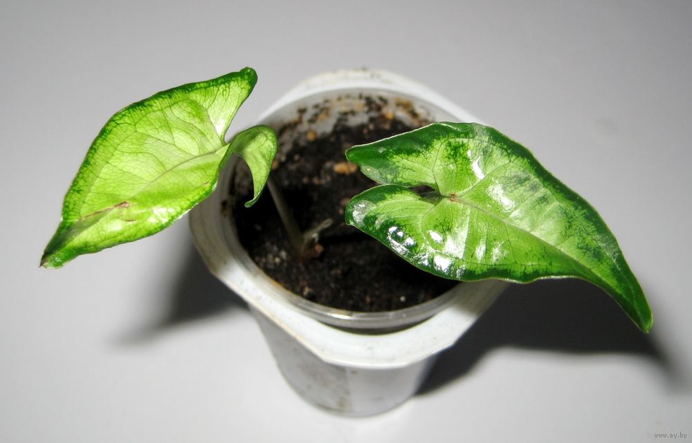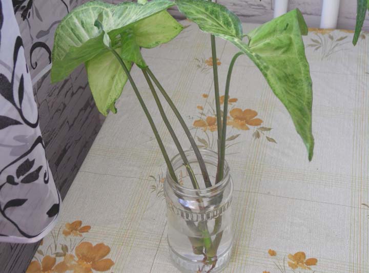 - Резници. Размножаването чрез резници на сингониум е най-лесният и бърз начин.Откъснати върхове на издънки с поне две пъпки много бързо стартират корени във вода или веднага в почвена смес.