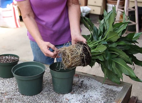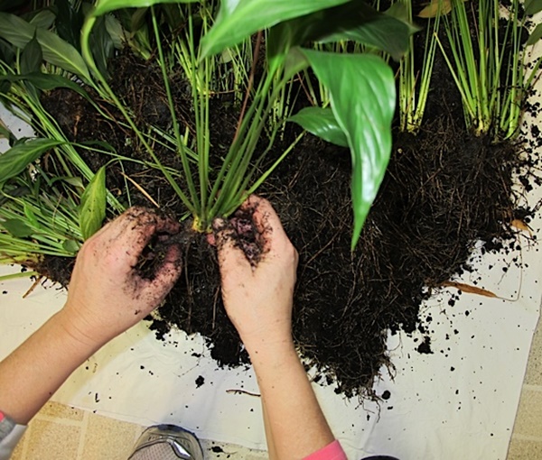 Как правилно да разделяме спатифилума по време на трансплантация? Корените трябва да бъдат разплетени, като се внимава да не се повредят. Резниците могат да се вкореняват в перлит, мокър пясък. Препоръчва се всеки храст да се покрие с прозрачна капачка с вентилационни отвори или редовно проветряване. След като всяко рязане укрепи кореновата система, тя се прехвърля върху субстрат от трева, торф, пясък, листна почва, 1: 2: 1: 2.