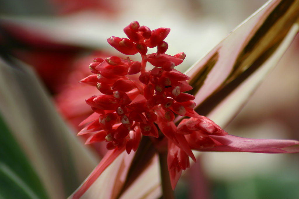 Цветята са малки с бели венчелистчета; те са идентични при почти всички сортове. Има сортове, които изобщо не цъфтят. Цветните прицветници и чашелистчетата са червени.