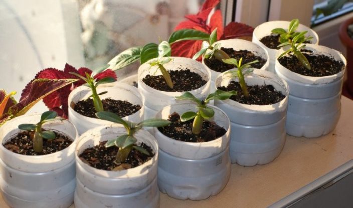 Най-малката саксия е най-добрият съд за семена. В такъв контейнер малките растения няма да страдат от излишната влага. Основното изискване към контейнера е наличието на голям брой дупки, през които ще се премахне ненужната влага, вредна за корените на цветето.