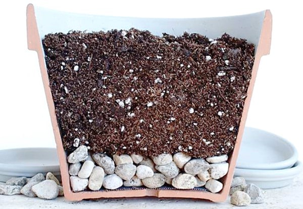 - На дъното на саксията трябва да се постави дренажен слой, съставляващ 1/5 от контейнера. Наличието на малки тухли в долния слой предотвратява загниването на корените поради стагнация на течности.