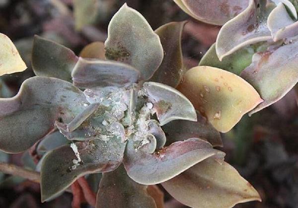 Опасните вредители включват брашнести и коренови бъгове. Появата им спира цъфтежа на ехеверията, нейния растеж и развитие. Определя се от деформационни промени в зелената част и белезникав цвят. Необходимо е цветето да бъде засадено в нова саксия с пълна подмяна на почвата и подрязване на засегнатите области. След приключване на процедурата се провежда лечение с Aktara и Fitoverm.