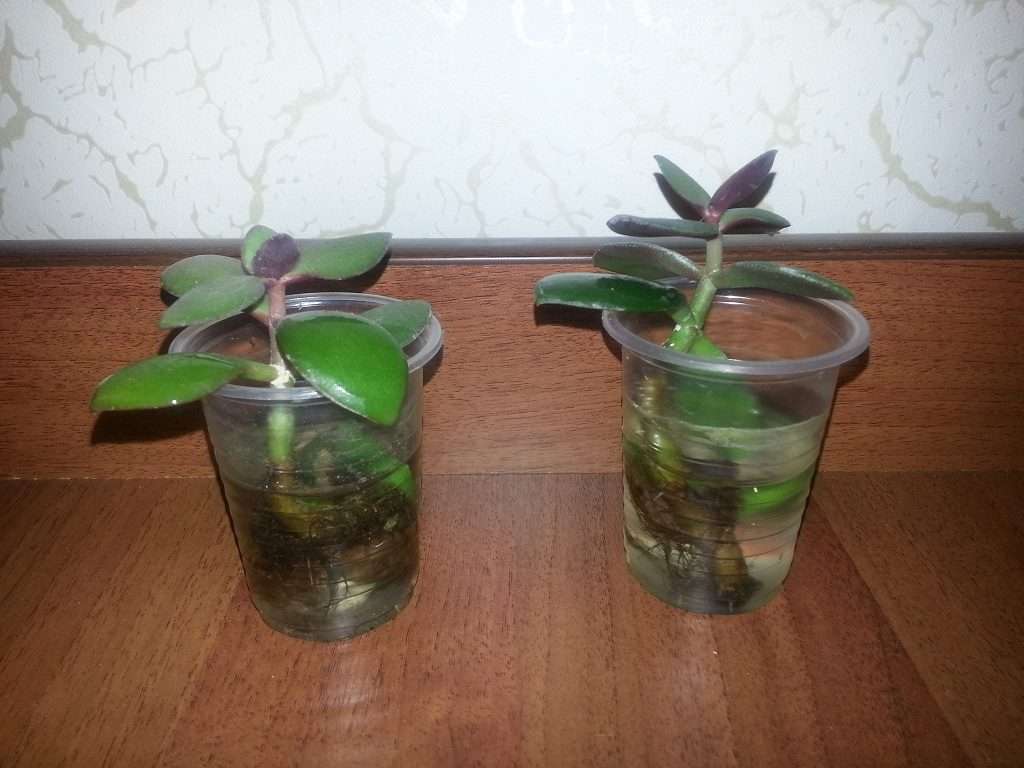 - Поставете резника във вода и изчакайте да се появят корените, а след това трансплантирайте растението в съчетана саксия. Отнема малко време, кореновата система се формира бързо.