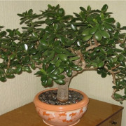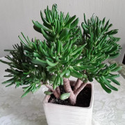 По форма цветето наподобява малко дърво с месести и мощни стъбла и сочни зелени листа. При по-старите екземпляри багажникът може да е частично твърд. Цветовете на Crassula са незабележими, малки и имат бледорозов оттенък. В закрити условия те се появяват много рядко.
