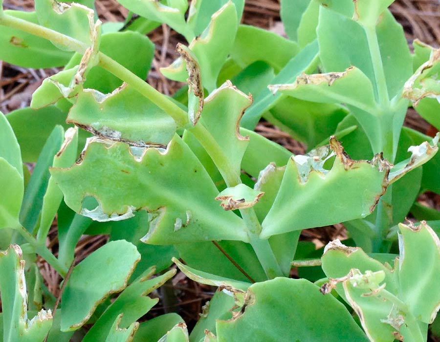 Сред насекомите вредители са особено проблематични мащабните насекоми, листни въшки, трипси, гъсеници и триони. Признак за появата им е спирането на цветето в развитие. Насекомите обичат да ядат месести листа и да изсмукват сокове от тях. Третирайте седума с инсектициди.