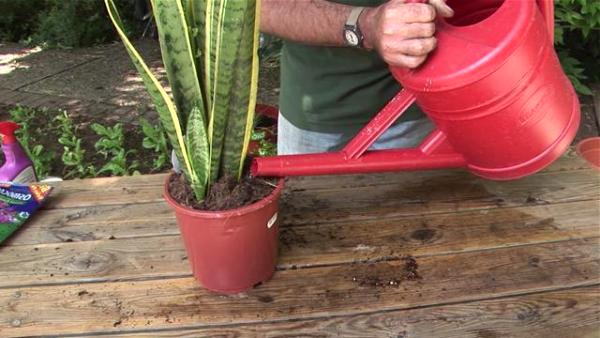 Режимът на напояване също спада към особеностите на домашните грижи за сансевиерията. Поливането на цветето трябва да бъде като сукуленти, тоест растения, които създават запас от влага в листата. Поливането се извършва след изсъхване на основата с 1 см и малко повече в дълбочина. При прекомерно поливане коренът започва да гние.