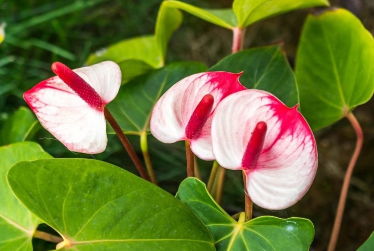 За антуриумите се избират широки, ниски саксии, в които почвата изсъхва по-равномерно. На дъното е положен добър дренаж.