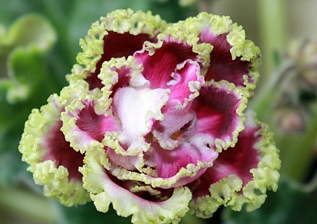 Цъфтежът на този сорт е доста буен и дълъг. Цветята са хавлиени, с ресни ръбове, фантастичен цвят.