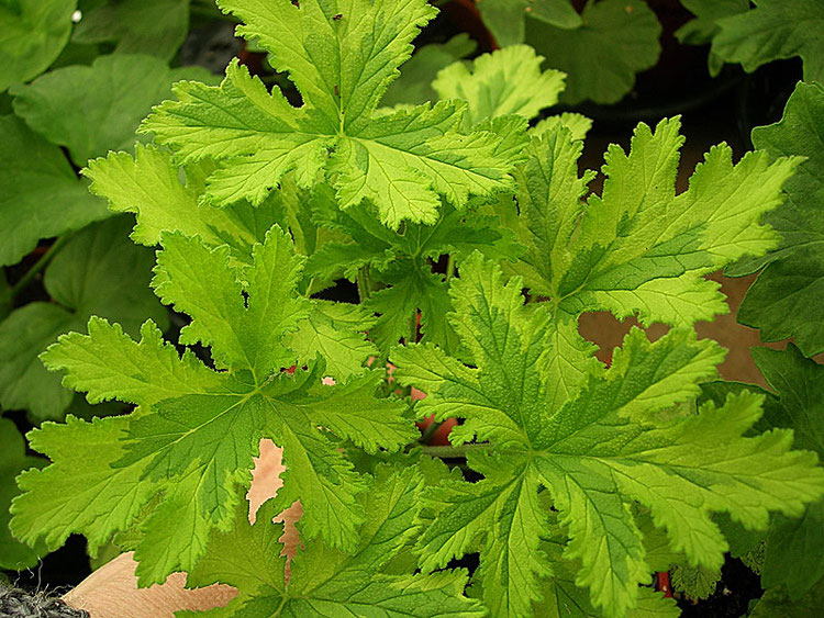 Листата на тази пеларгония имат лимонено-смолист аромат. Цветът им е пъстър - съчетава сектори от светло и тъмно зелено.