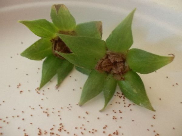 След всякакъв вид опрашване на мястото на цветето, семенната шушулка узрява за 6-8 седмици. След посочения период започва да се напуква. Веднага щом това се случи, трябва незабавно да отрежете контейнера със семена от дръжката и да го поставите върху лист хартия. На свой ред листът с реколтата трябва да се постави на тъмно място за пълно узряване.