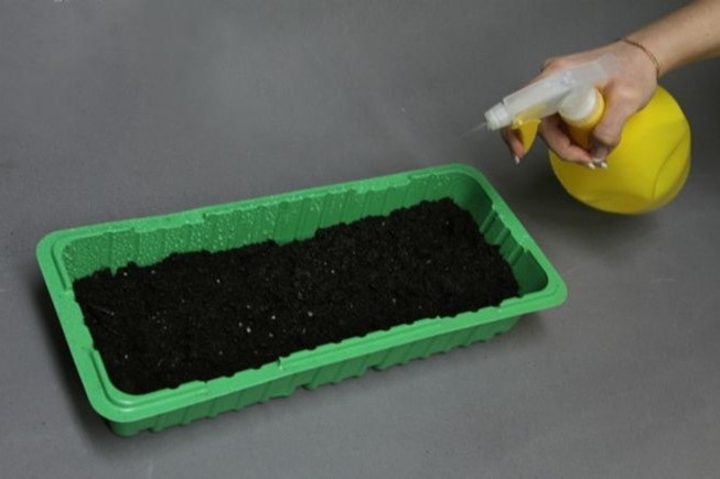 - Не е нужно да ги поръсвате с пръст. Достатъчно е повърхността отново да се напръска добре с вода. Всяко семе ще падне само в земята до необходимата дълбочина.