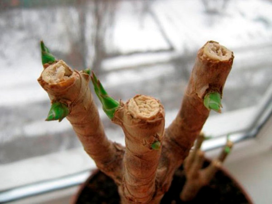 След подрязването на растението трябва да се осигурят комфортни условия и почивка. По това време пряката слънчева светлина е противопоказана за него. Първото поливане се извършва само след една седмица, с топла, утаена вода. Млади издънки на храста могат да се очакват след четири дни. С диаметър на багажника повече от пет сантиметра, почти всички клони се отрязват от него, оставяйки две или три издънки от различни страни.