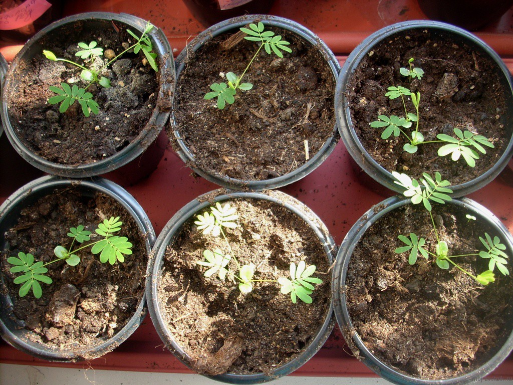 У дома срамежливата мимоза се отглежда чрез семена. Препоръчва се сеитбата в края на февруари или началото на март. Преди засаждане трябва да подготвите семена, които имат доста твърда обвивка. За по-бързо покълване се препоръчва да се извърши стратификация или да се разтрие черупката на семето с шкурка. Почвата трябва да бъде наситена с хранителни вещества. Почвеният материал се полага в почвата, която се излива в подготвения контейнер. Здравето на растението и продължителността на цъфтежа зависят от правилните грижи за културите.