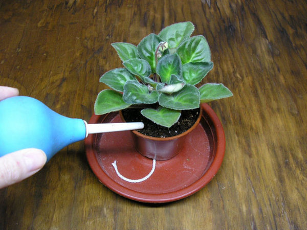- Чрез палета - дренажните отвори в долната част на резервоара не възпрепятстват потока на водата и предотвратяват нейния застой. След изливането на течността тя се оставя за един час, след което излишъкът се източва - в противен случай ще настъпи преовлажняване на субстрата и образуване на кореново гниене.