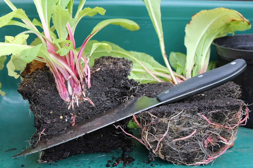 - С нож те разделят цветето на няколко части, като същевременно оставят малко основно издънка върху тях.