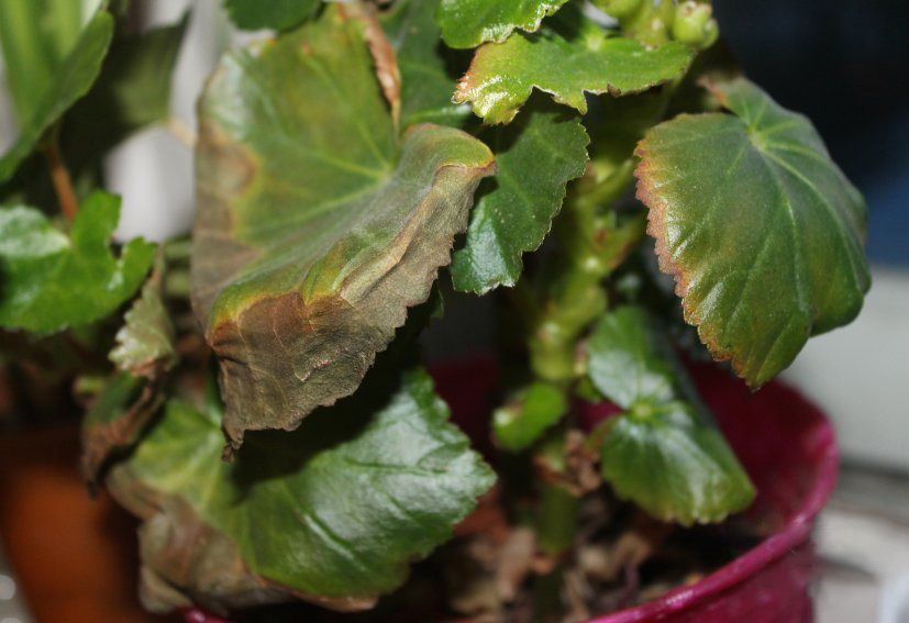 Причините, поради които върховете на листата или целият лист изсъхват в бегония, могат да бъдат следните: