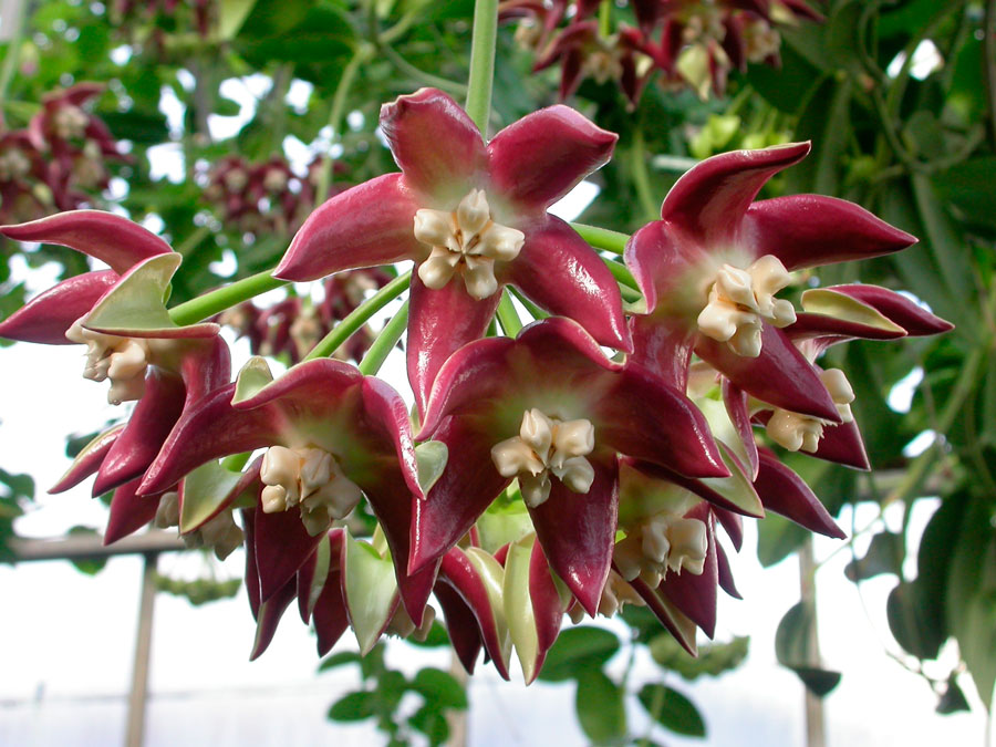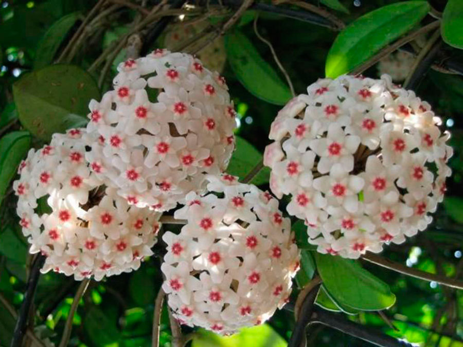 С правилната и такава проста грижа цъфтежът продължава от началото на лятото до есента. Цветята се събират на гроздове (чадъри) от 20 до 50 цветя в едно. Цветовете имат същия восъчен ефект като листата. Самото цвете се състои от венчелистчета и корона в центъра. Красотата се крие не само в количеството, но и в цветовия контраст. По-често венчелистчетата са светли, а короната е пурпурна, червена, ярко оранжева, люлякова.