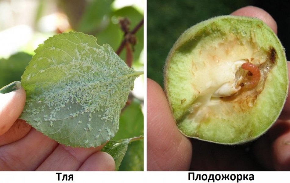 - Кайсиеви листа се извиват, какво да се прави: изследвайте дървото, най-вероятно листните въшки са се заселили върху тях. Можете да се отървете от него с помощта на сапунен разтвор, който се напръсква върху листата, или можете да закупите търговски продукт "Fufanon".