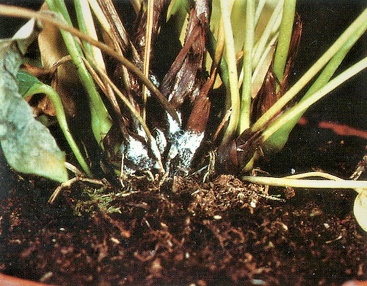 Това заболяване се характеризира с появата на почернял пръстен около основата на стъблото. Зоната до лезията става мека, изтънява, което води до отмиране на цветето.