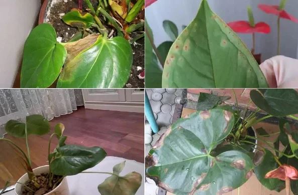 Микроскопичните гъбички могат да останат на растението, когато са закупени или да се появят при обилно поливане. Антуриумът е влаголюбива култура, вероятността от разпространение на бактерии е възможно най-висока.