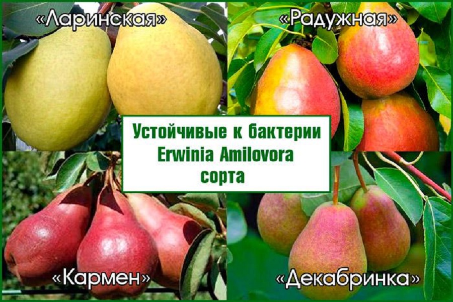 Има сортови представители, които са развили вид имунитет към развитието на заболяване като бактериално изгаряне. Летните жители трябва да обърнат внимание на следните сортове круши: