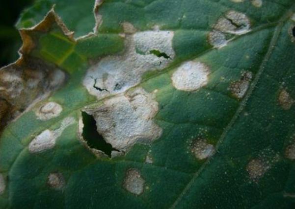 На растението се появява инфекция със сива плесен с бели петна. С течение на времето те започват да потъмняват и кафяви.