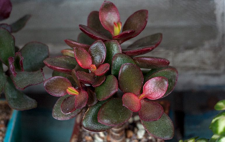 Ако листата на дебелата жена станат червени или станат лилави, тогава растението трябва да бъде покрито от слънчевите лъчи или да се пренареди на по-тъмно място.