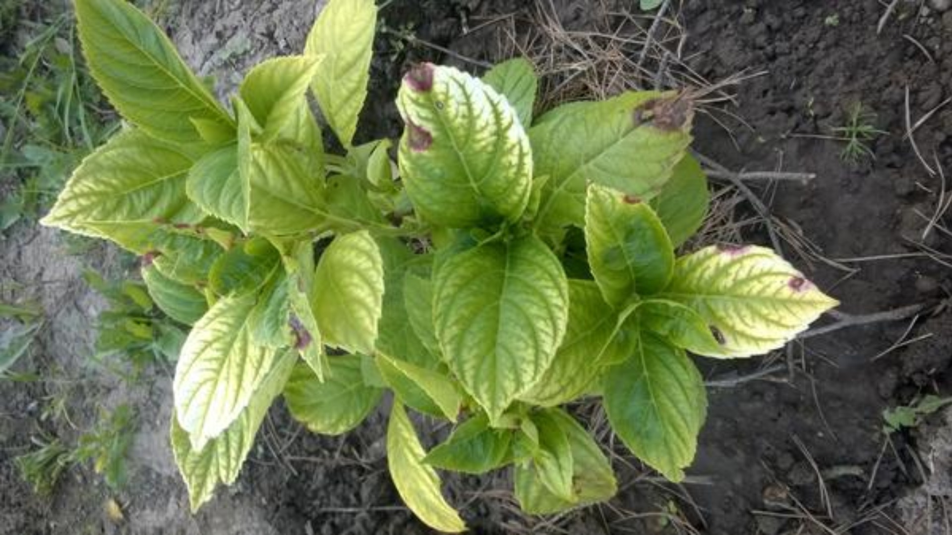 Симптоми на хлороза в листа на хортензия