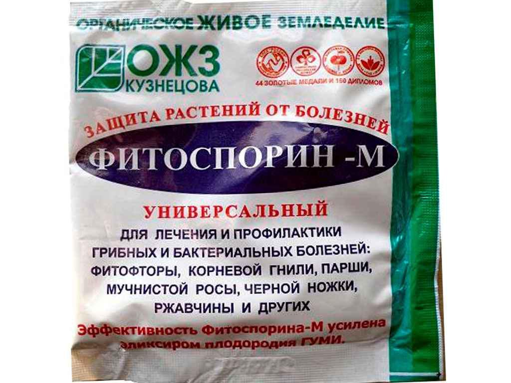 - Фитоспорин - в състава на живите спори и клетки. Разведен съгласно инструкциите, прилага се веднъж на 14 дни.