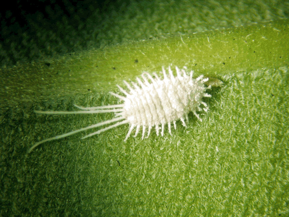 Този вредител изглежда като малки бучки памук. Червеят се придържа към външната повърхност на листа и се прикрепя към междувъзлията. Сухата почва и рядкото поливане провокират нейното размножаване. Mealybug не понася висока влажност.