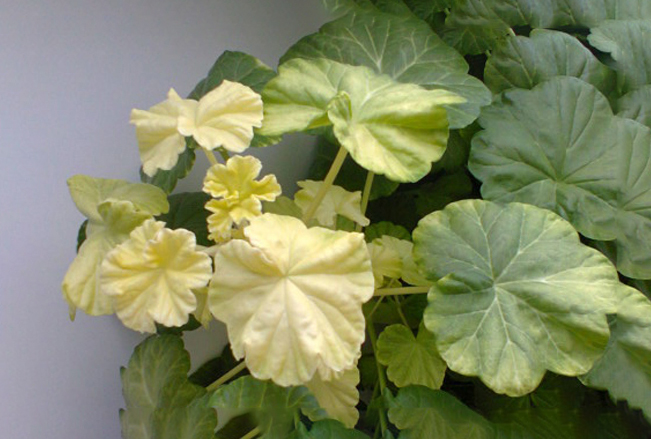 В здравата пеларгония цветът на листната плоча има светъл или тъмно зелен оттенък (в зависимост от сорта). Именно този външен вид е норма. Понякога има пълно или частично изсветляване на цвета, причината може да е неподходящи условия, грешки в грижите или заболяване.