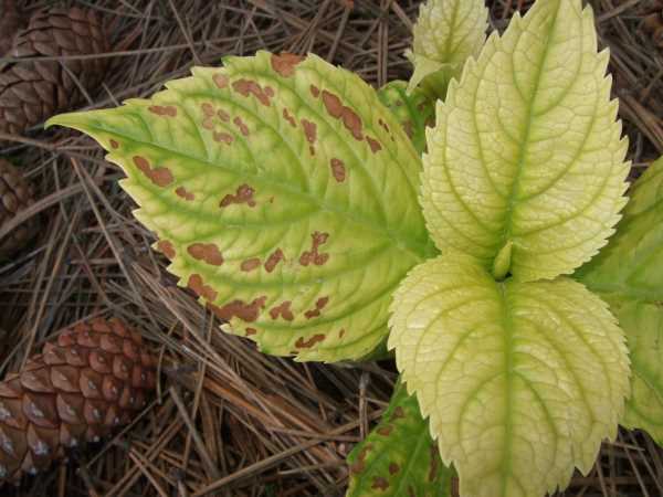 Има много заболявания, които при неправилна грижа могат да навредят на хортензията и да изсветлят листата ѝ.