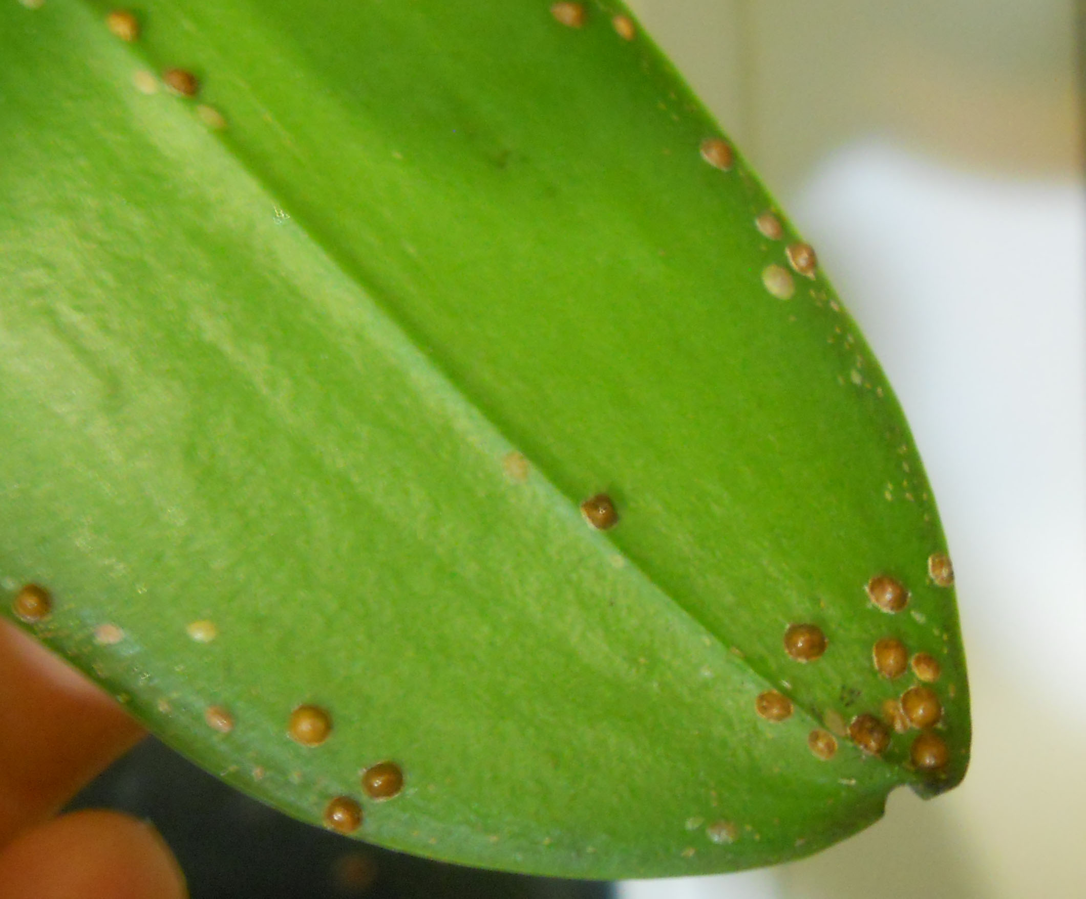 Растението, засегнато от ножницата, изглежда депресирано, листата пожълтяват и изсъхват. За да премахнете насекомото, избършете листата със сапунена вода.След отстраняване на паразита е необходимо растението да се премести в по-хладно помещение и да се увеличи съдържанието на влага в почвата.