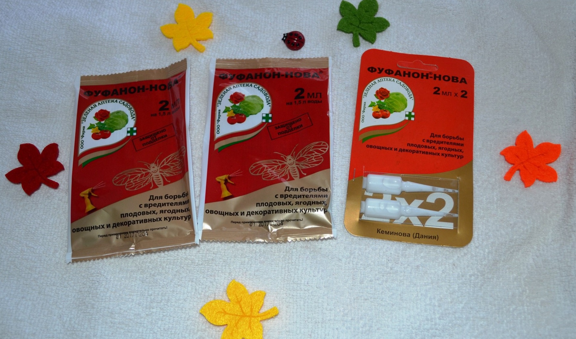 - "Фуфанон".Засяга храносмилателната система на насекомите, унищожавайки ги. Това е най-известният и достъпен инсектицид.