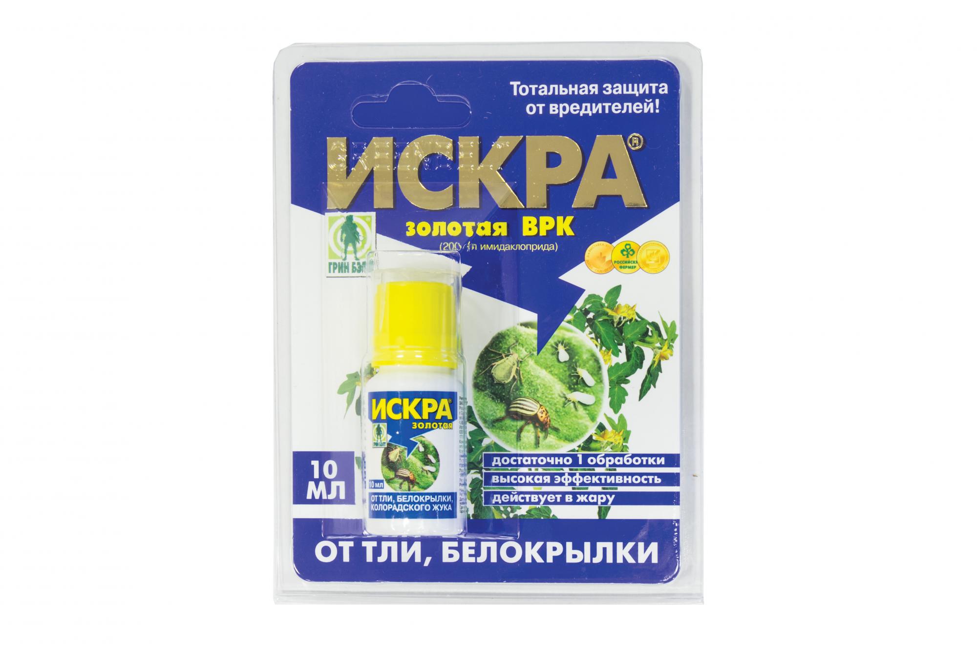 - Искра Золотая. Активната съставка на агента е неоникотиноид, който парализира насекомите и води до тяхната смърт. Отличителна черта на лекарството е липсата на абсорбция в растителните клетки.