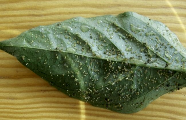 Тютюневият прах се комбинира с вода в съотношение 1: 2 и се оставя за три дни. Прецедете и разредете с вода в съотношение 1: 1. Запарката не трябва да пада върху почвата на саксията, в противен случай кореновата система може да пострада.